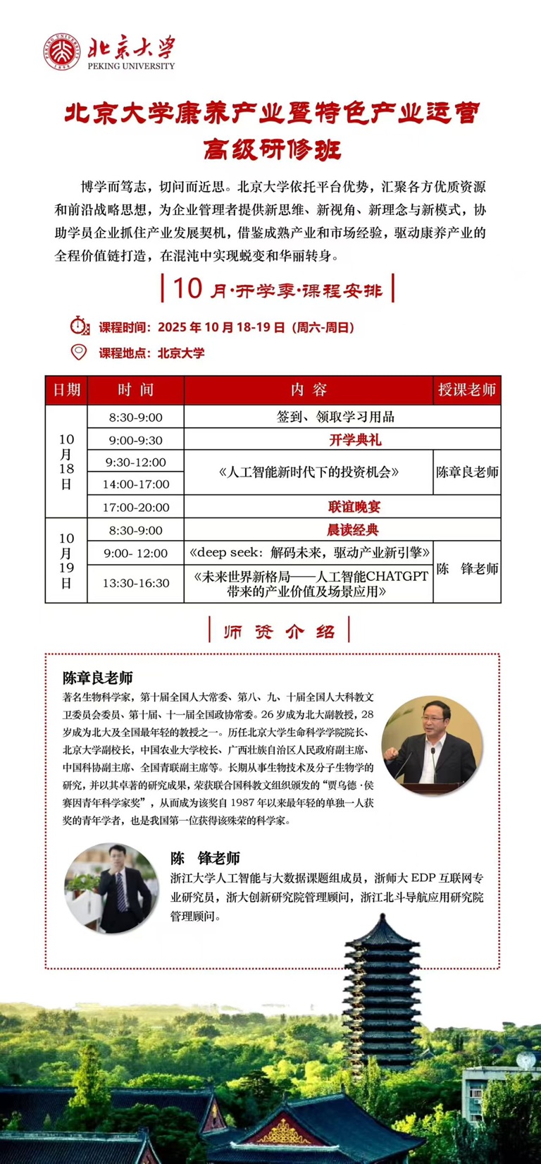 北京大学康养产业暨特色产业运营高级研修班10月开课安排 |