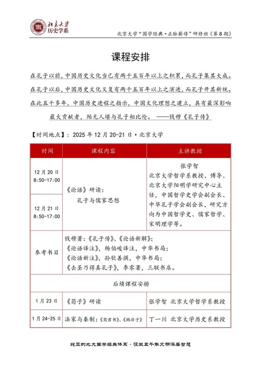 北京大学“国学经典·正脉薪传”研修班(第8期)12月开课通知